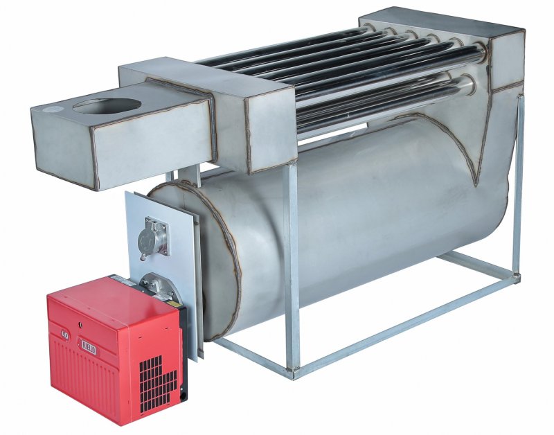 Конструкция теплообменника выполнена из нержавеющей стали. Теплообменный блок с закрытой камерой сгорания позволяет исключить прямой контакт красок и растворителей с нагревательными элементами и открытым пламенем, обеспечить бездымное сгорание топлива и самоочистку внутренних поверхностей камеры сгорания и регистров от продуктов горения.