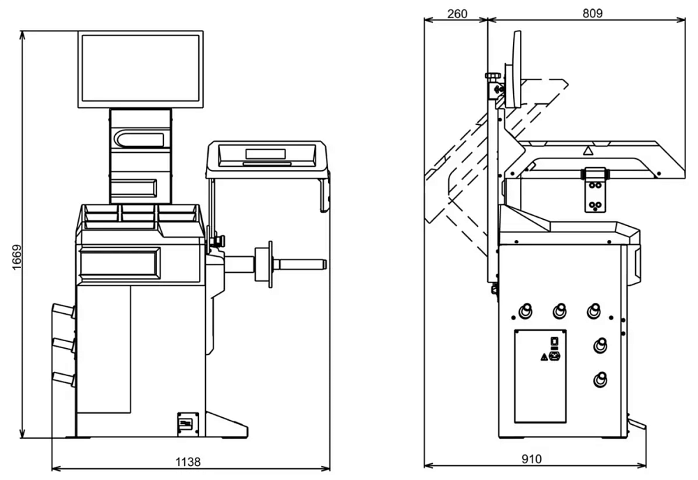 • Электромеханический тормоз для точной фиксации колеса в месте установки корректирующей массы