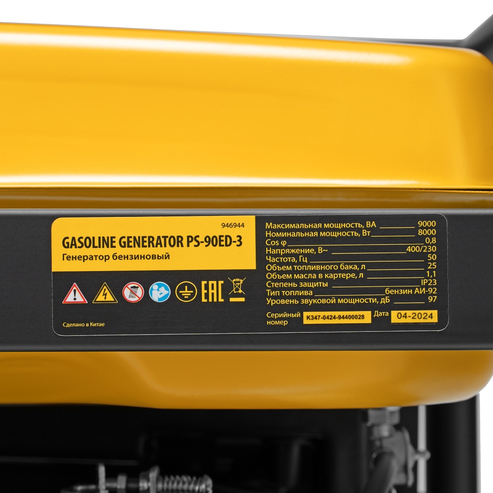 Генератор бензиновый PS 90 ED-3, 9.0 кВт, переключение режима 230 В/400 В, 25 л, электростартер Denzel купить в Красноярске цена ✅ - Все для СТО