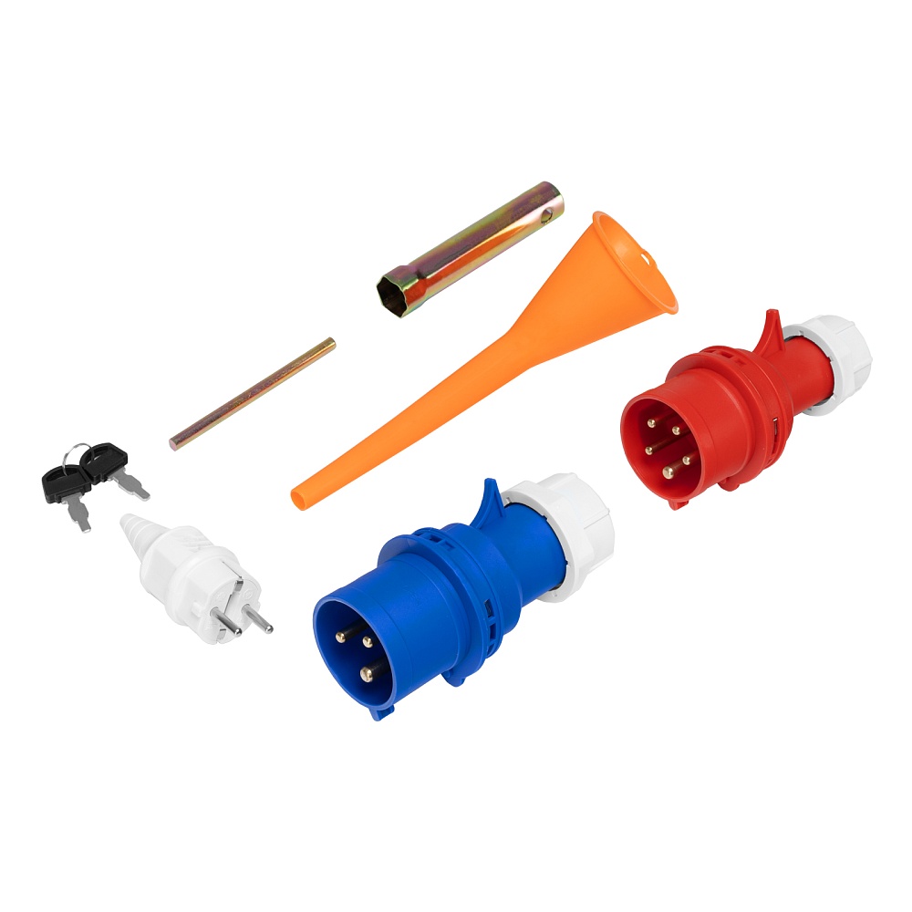 Генератор - 1 штКлюч свечной - 1 штКлюч зажигания - 2 штВилка 230В/16А - 1 штВилка 230В/32А - 1 штВилка 400В/16А - 1 штРуководство по эксплуатации с гарантийным талоном - 1 шт