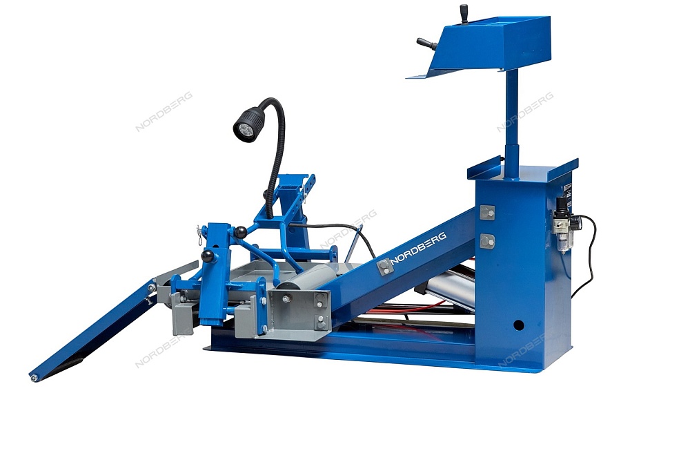 Пневматический борторасширитель NORDBERG D5 для шин грузовых автомобилей с установочным столом и подъемником разработан для фиксации шины, расширения ее бортов и подъема во время ремонта.