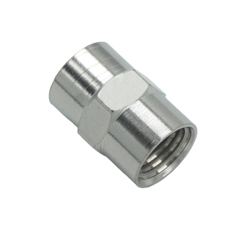 Переходник с внутренней резьбой 1/4"-1/4". Предназначен для соединения различных компонентов в пневматических системах.