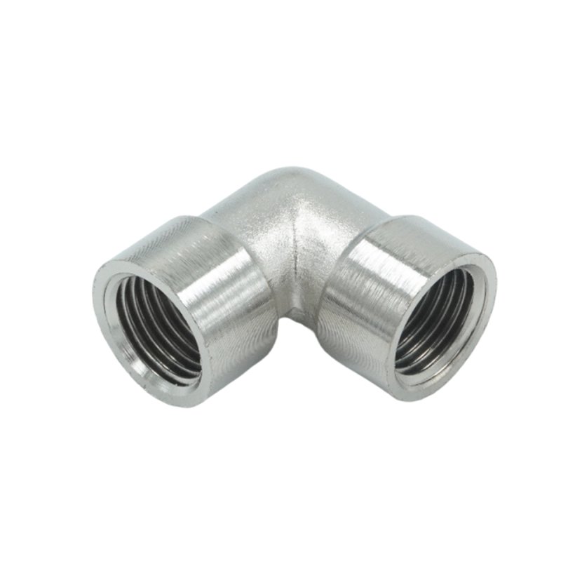 L-образный переходник с внутренней резьбой 1/4". Используется для соединения труб и шлангов в пневматических системах.