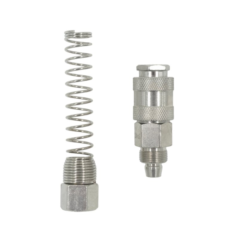 Быстросъемное пневматическое соединение с пружинкой и резьбой 1/2". Обеспечивает быстрое и надежное подключение в пневматических системах.