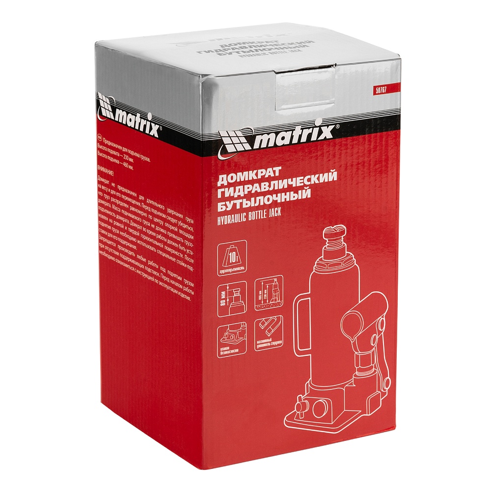 Домкрат гидравлический бутылочный, 10 т, h подъема 230-460 мм Matrix