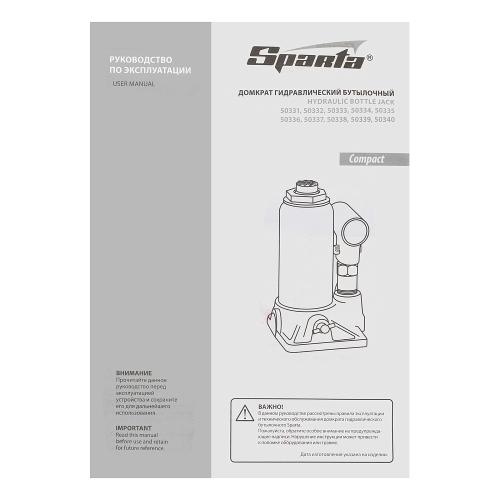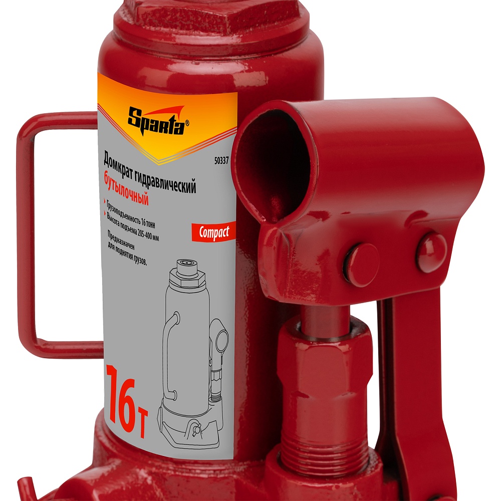Домкрат гидравлический бутылочный 16 т, h подъема 205-400 мм Sparta Compact