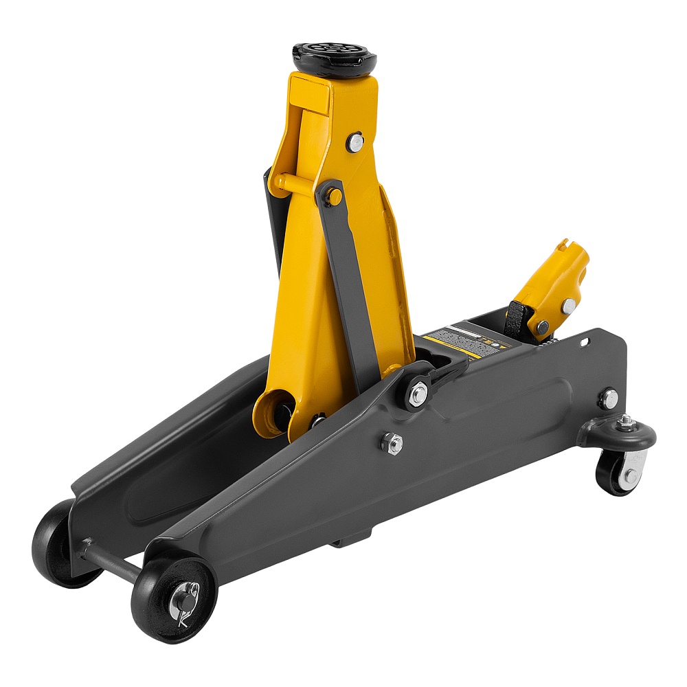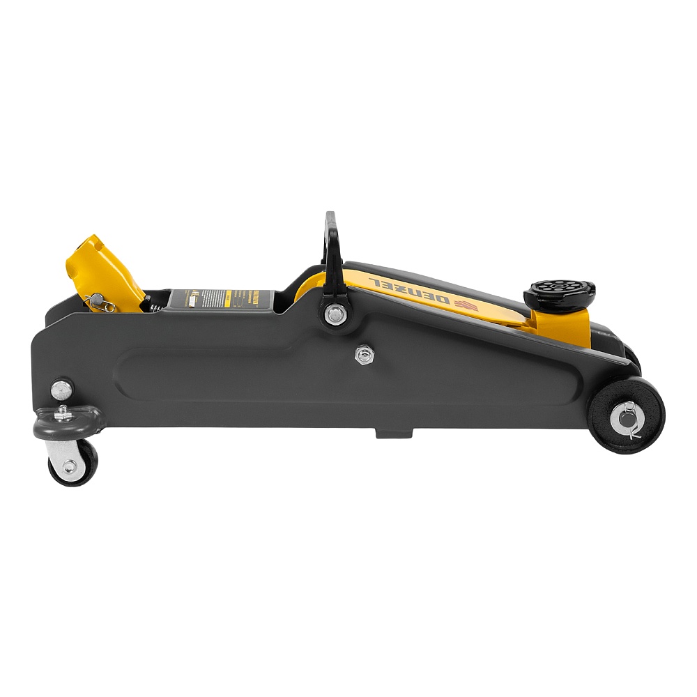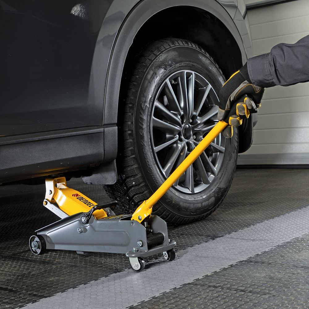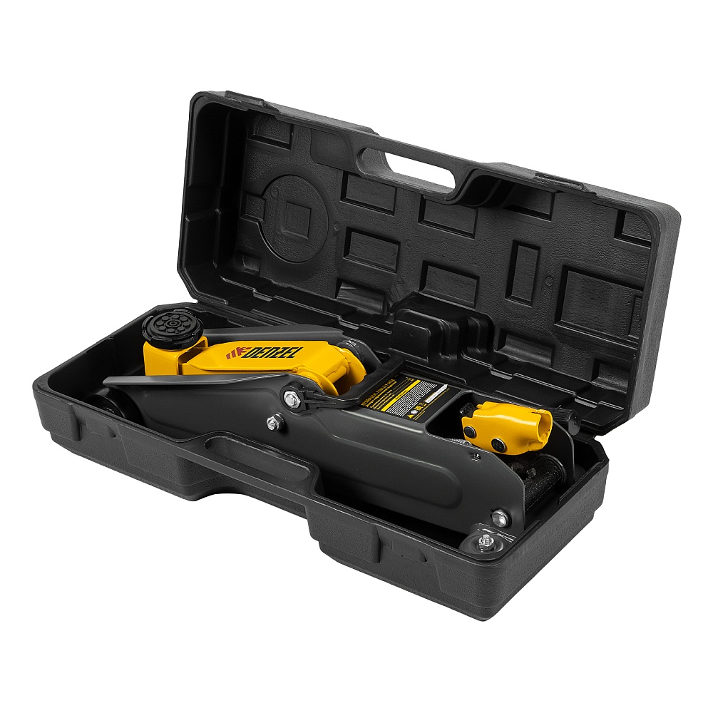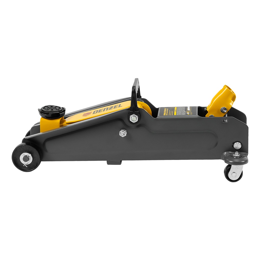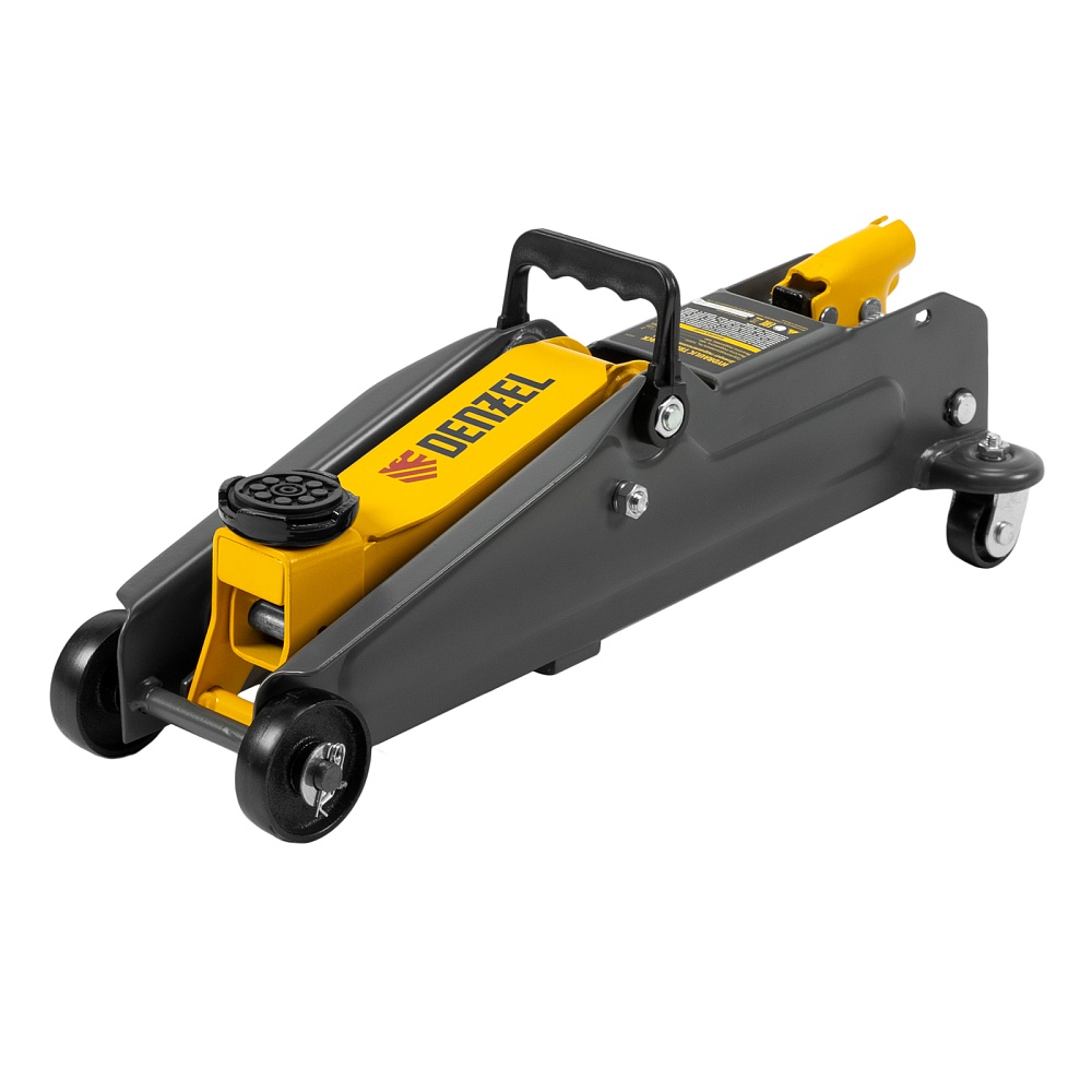 Гидравлический подкатной домкрат Denzel 51231 с высотой подхвата 135 мм, поставляющийся в пластиковом кейсе, предназначен для плавного подъема грузов массой до 2 т на высоту до 385 мм. Домкрат пригодится владельцам легковых автомобилей со стандартным клиренсом.