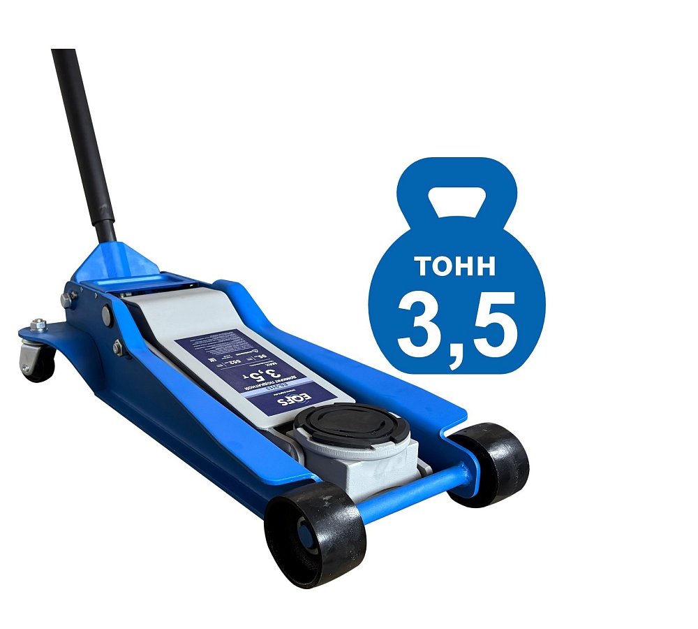 Профессиональный. Подкатной. Низкопрофильный. Двухштоковый механизм. Усиленная конструкция. Быстрый подъем. Имеет повышенную износостойкость. Поворотная ручка, тавотница, лоток для хранения и резиновая накладка на чашку домкрата в комплекте. Грузоподъемность 3,5 тонны с усиленными ребрами жесткости.  Высота подъема мин / макс - 95-552 мм. Вес 46 кг.