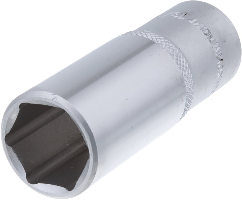 Головка торцевая длинная 6-гр. 1/2 1-1/4'' Головка имеет однородное высококачественное покрытие Satinn, обеспечивающие надежную защиту от царапин и коррозии. Снабжена специальными фрикционными насечками, предотвращающими выскальзывание из рук. Профиль головок Super Lock похож на шестигранный, однако пятно контакта с крепежом на них смещено к центру, благодаря чему захват крепежа производится не за грань, а между гранями, это позволяет откручивать крепеж, у которого грани имеют повреждения. Такие головки разрабатывались для большей универсальности: ими можно откручивать как метрический, так и дюймовый (SAE - американский стандарт) шестигранный крепеж. Недостатком этого типа головок можно назвать необходимость точного подбора размера головки под крепеж, в противном случае такая головка может легко сорвать грани крепежа. Торцевые головки СТАНКОИМПОРТ изготовлены из высококачественной хромо-ванадиевой стали. Имеют твердость в пределах 45-48 HRC Весь инструмент компании СТАНКОИМПОРТ соответствует требованиям стандартов качества ГОСТ и DIN, а по некоторым параметрам их превосходит