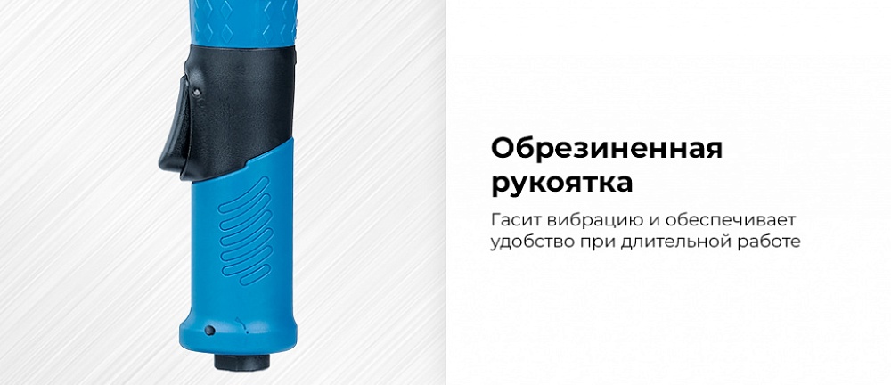 Эргономичная обрезиненная рукоятка гасит вибрацию и обеспечивает удобство при длительной работе.