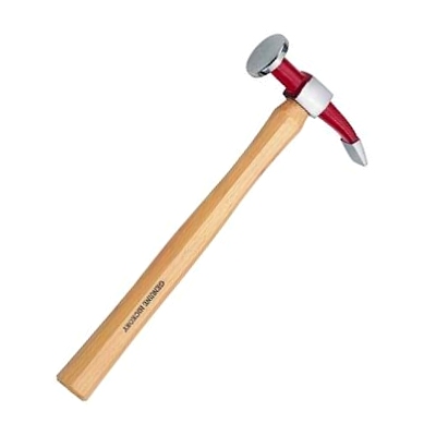 Стальной рихтовочный молоток с круглой головкой и узким изогнутым бойком.