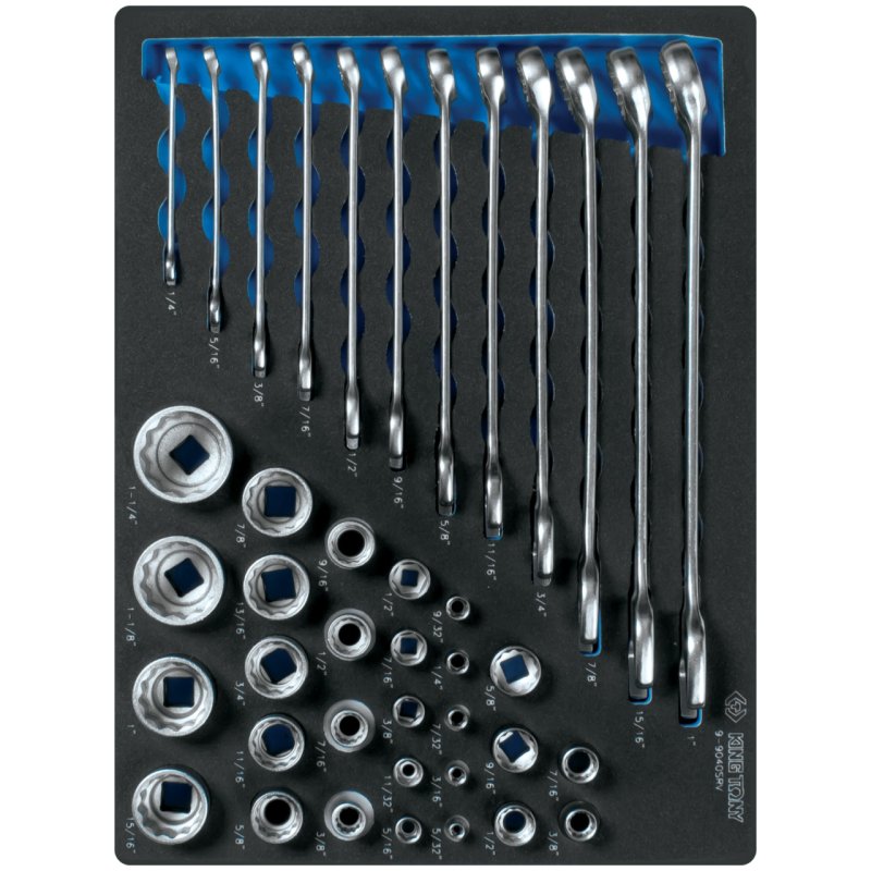 KING TONY Набор комбинированных ключей, набор торцевых головок 1/4", 3/8", 1/2", ложемент, 40 предметов KING TONY 9-9040SRV