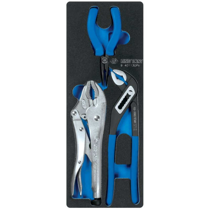 KING TONY Набор пассатижи, переставные клещи и зажим, ложемент, 3 предмета KING TONY 9-40113GPV