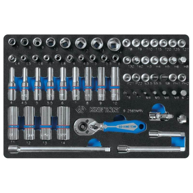 KING TONY Набор торцевых головок 1/4" с принадлежностями, ложемент, 65 предметов KING TONY 9-2565MRV