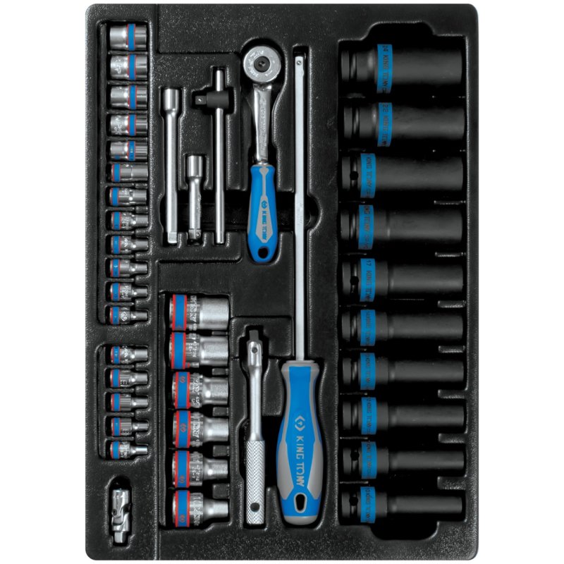 KING TONY Набор ударных головок 1/2" и торцевых головок 1/4" с принадлежностями, ложемент, 40 предметов KING TONY 9-7540MR