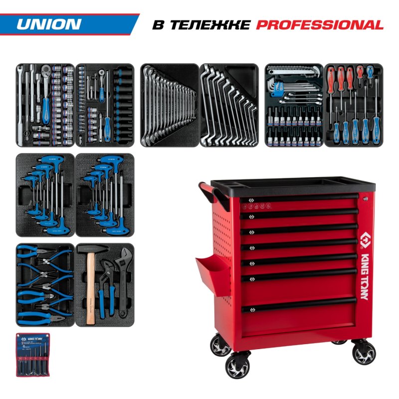Набор инструментов 173 предмета, "UNION", в красной тележке KING TONY 9G38-000MRR купить в Красноярске цена ✅ - Все для СТО