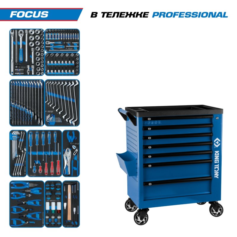 Набор инструментов 188 предметов, "FOCUS", в синей тележке KING TONY 9G38-188MRVB купить в Красноярске цена ✅ - Все для СТО