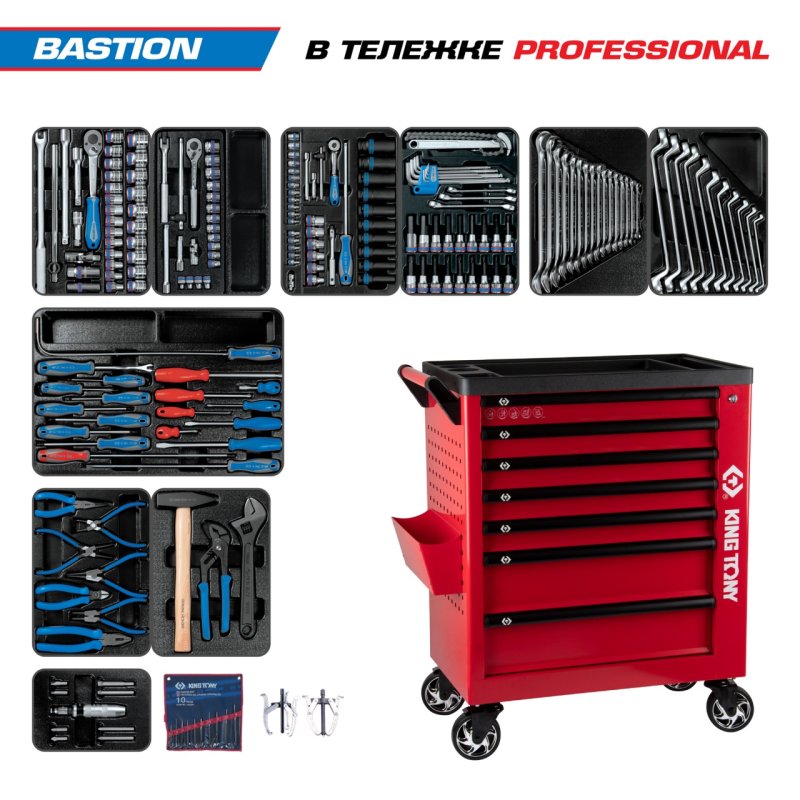 Набор инструментов 204 предмета, "BASTION", в красной тележке KING TONY 9G38-100MRR купить в Красноярске цена ✅ - Все для СТО