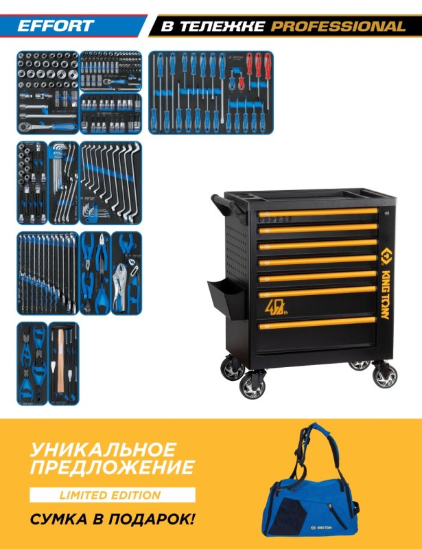 Набор инструментов 235 предметов, "EFFORT", в черной тележке KING TONY 9G38-235MRV40 купить в Красноярске цена ✅ - Все для СТО