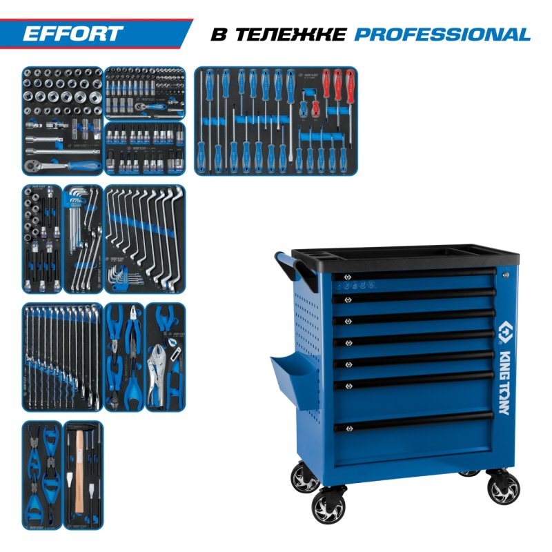 Набор инструментов 235 предметов, "EFFORT", в синей тележке KING TONY 9G38-235MRVB купить в Красноярске цена ✅ - Все для СТО
