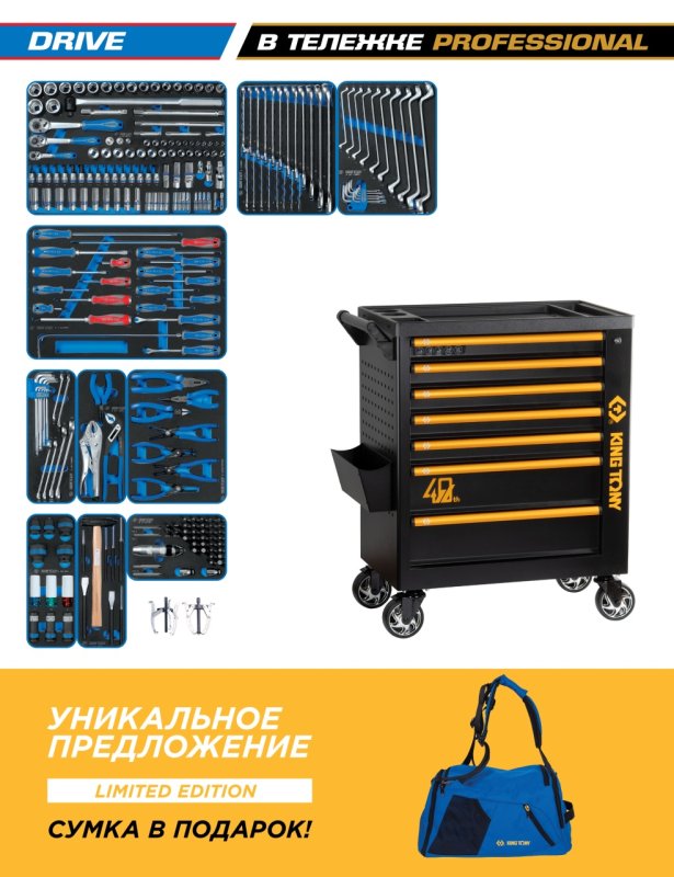 Набор инструментов 251 предмет, "DRIVE", в черной тележке KING TONY 9G38-251MRV40 купить в Красноярске цена ✅ - Все для СТО