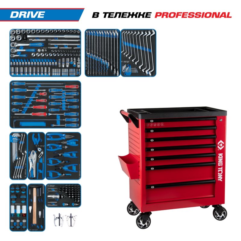 Набор инструментов 251 предмет, "DRIVE", в красной тележке KING TONY 9G38-251MRVR купить в Красноярске цена ✅ - Все для СТО