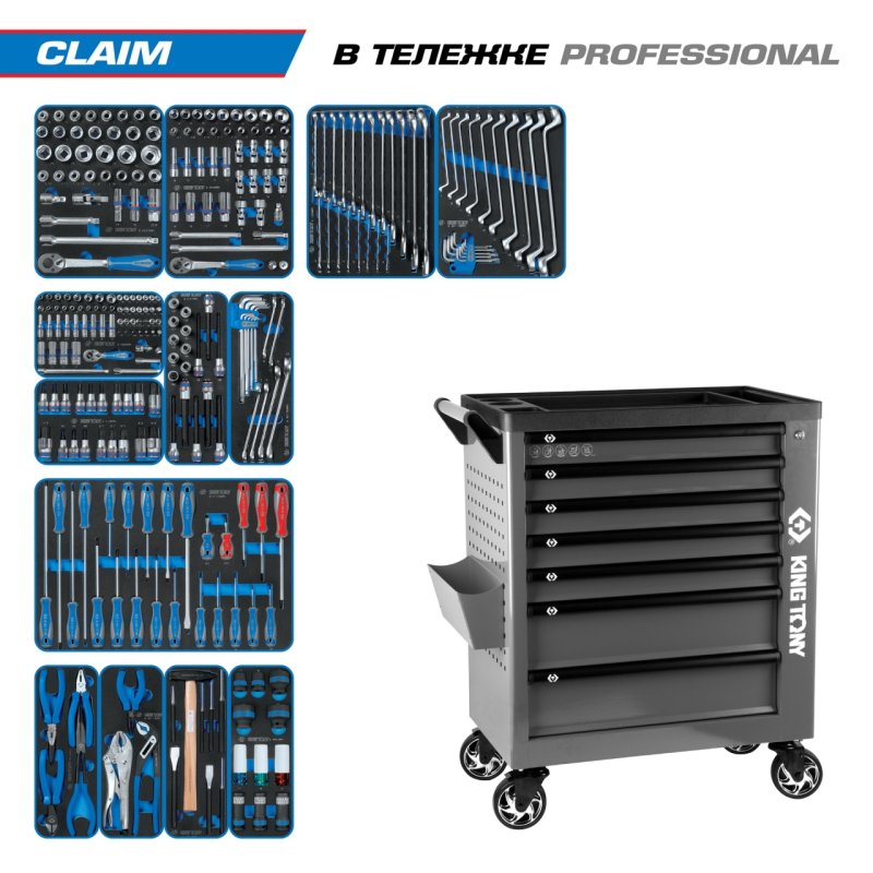 Набор инструментов 286 предметов, "CLAIM", в серой тележке KING TONY 9G38-286MRVG купить в Красноярске цена ✅ - Все для СТО