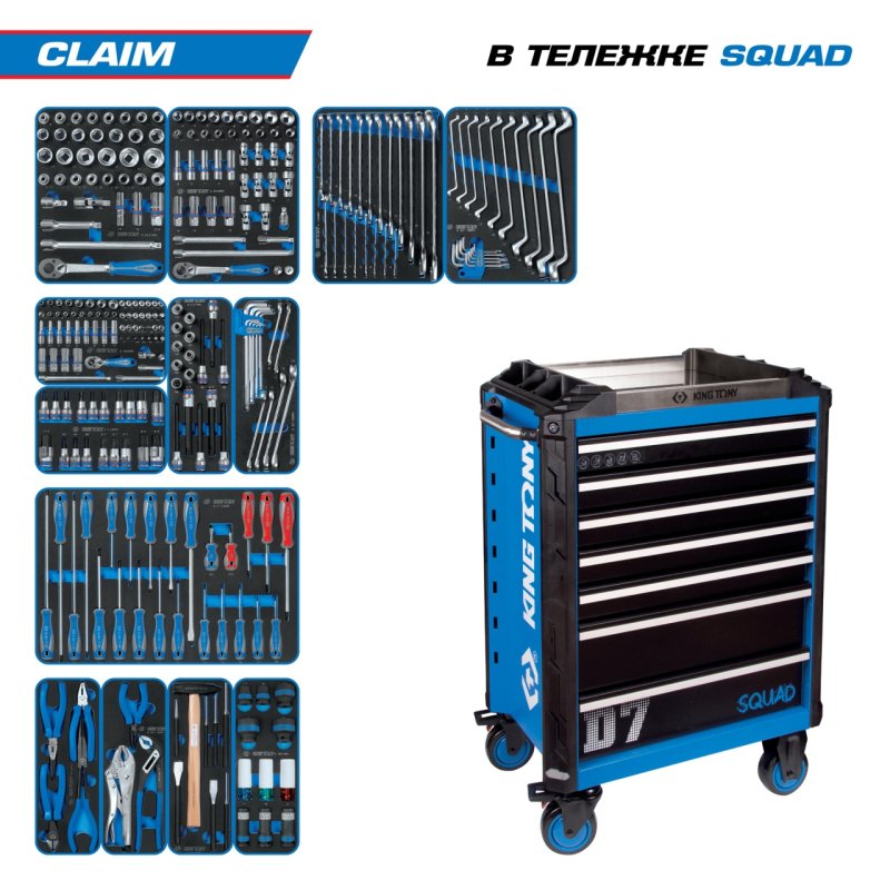 Набор инструментов 286 предметов, "CLAIM", в синей тележке KING TONY 9SQ31-286MRV купить в Красноярске цена ✅ - Все для СТО