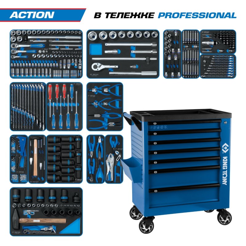 Набор инструментов 327 предметов, "ACTION", в синей тележке KING TONY 9G38-327MRVB купить в Красноярске цена ✅ - Все для СТО