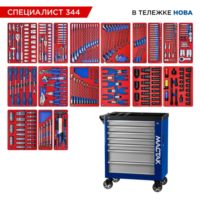 Набор инструментов 344 предмета, "СПЕЦИАЛИСТ 344", в синей тележке МАСТАК 50-07344B купить в Красноярске цена ✅ - Все для СТО