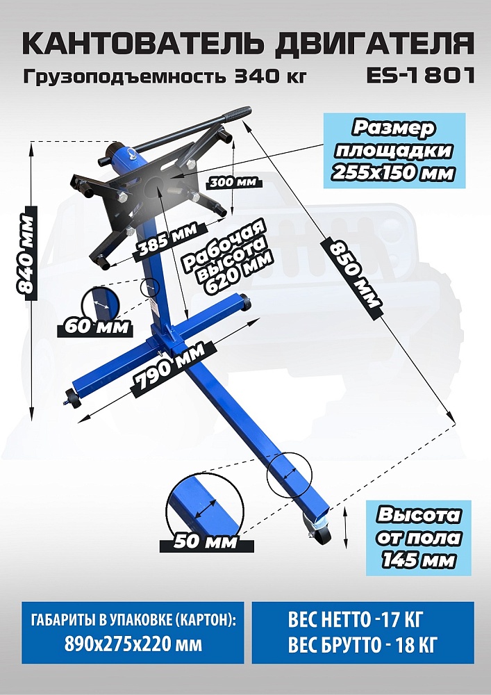 ES-1801 Кантователь двигателя 340 кг купить в Красноярске цена ✅ - Все для СТО