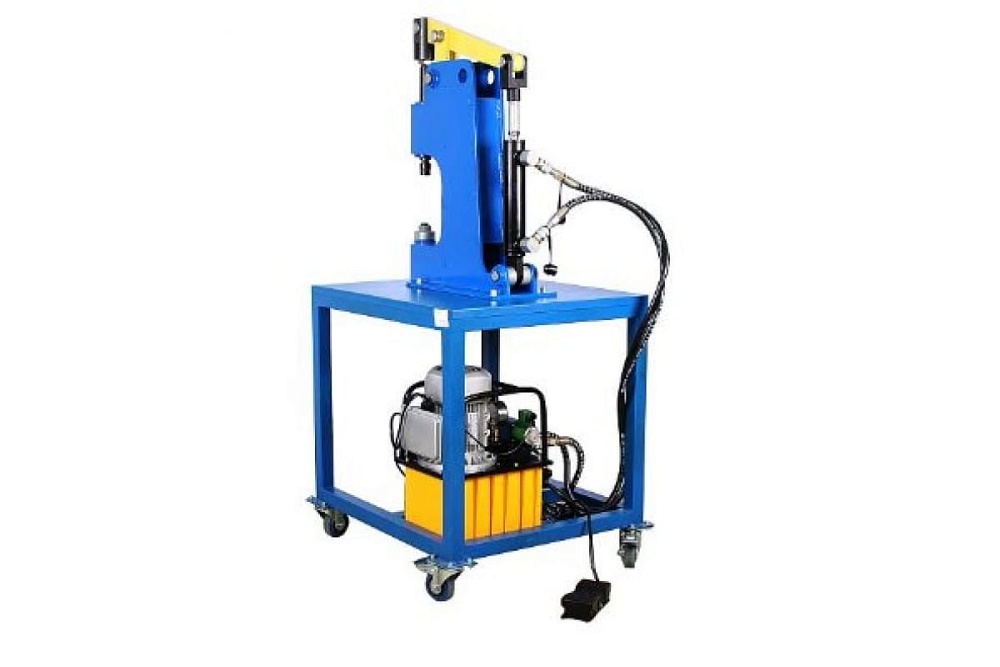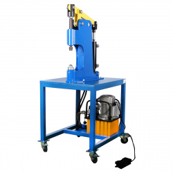 специально для расклёпки и наклёпки тормозных накладок для грузовой техники, прицепов, полуприцепов и т.п. Благодаря гидравлической станции, гидроцилиндр развивает максимальное усилие до 3000 кг. Гидравлика в действие приводится с помощью электрической насосной станции. Управление клепальным станком осуществляется с помощью ножной педали. Станок комплектуется насадками разных типоразмеров для различных заклепок.