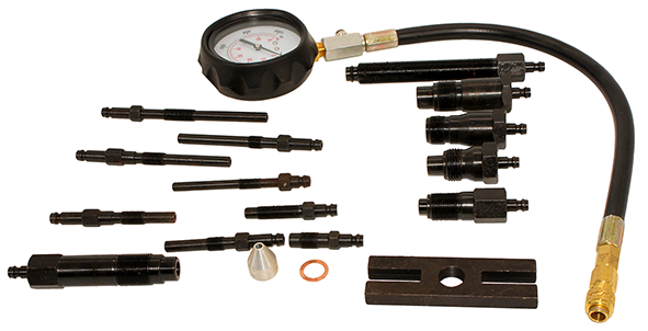 Этот комплект используется для определения компрессии моторов дизелей, которые относятся к любым типам транспорта, как с обычным, так и с прямым впрыскиванием. Еще применяется в промышленных двигателях и лодочных моторах.