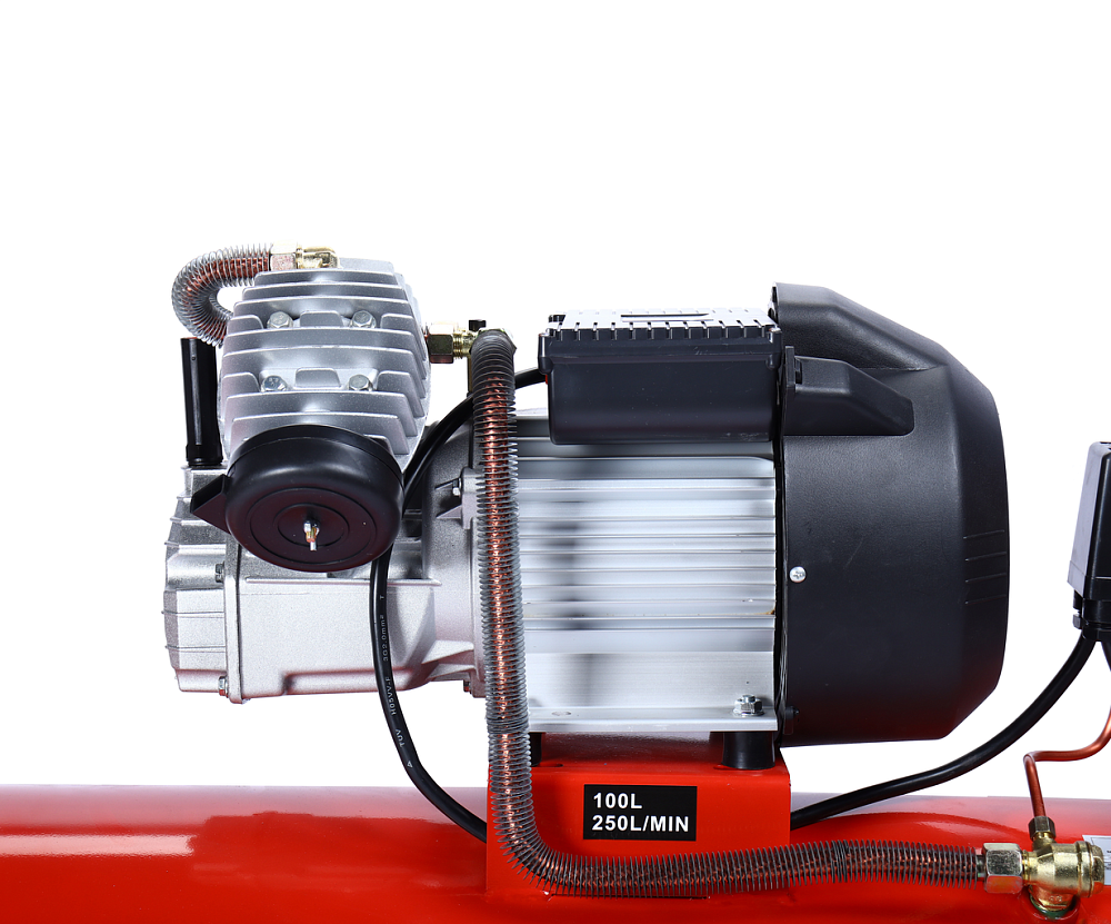 Компрессор поршневой с прямым приводом V-образный двигатель. Напряжение 220 В, ресивер 100 л, производительность 250 л/мин. Применяется в строительных, автосервисных, медицинских работах и в гараже. Гарантия 24 месяца.