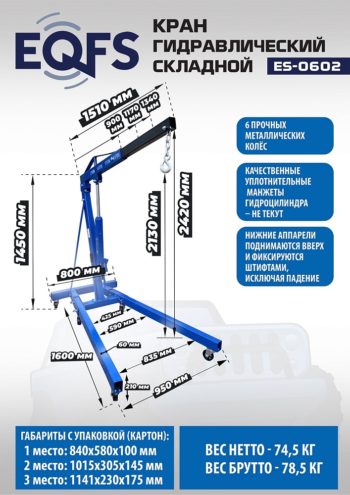 Особенности конструкции  ES-0602 кран гаражный гидравлический 2 тонны: