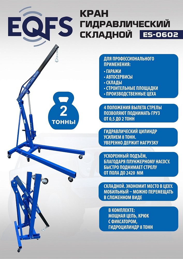 ES-0602 Кран гаражный, 2 т купить в Красноярске цена ✅ - Все для СТО