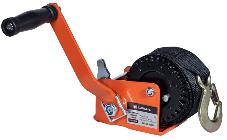 Лебедка ручная барабанная СибТаль, модель LRB, 1100 кг, лента 10 м
