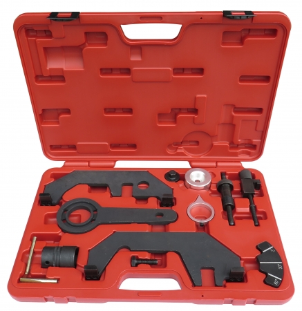 Набор представляет из себя полный комплект приспособлений для регулировки фаз ГРМ и монтажа демпфера коленчатого вала BMW двигателей N62, N73