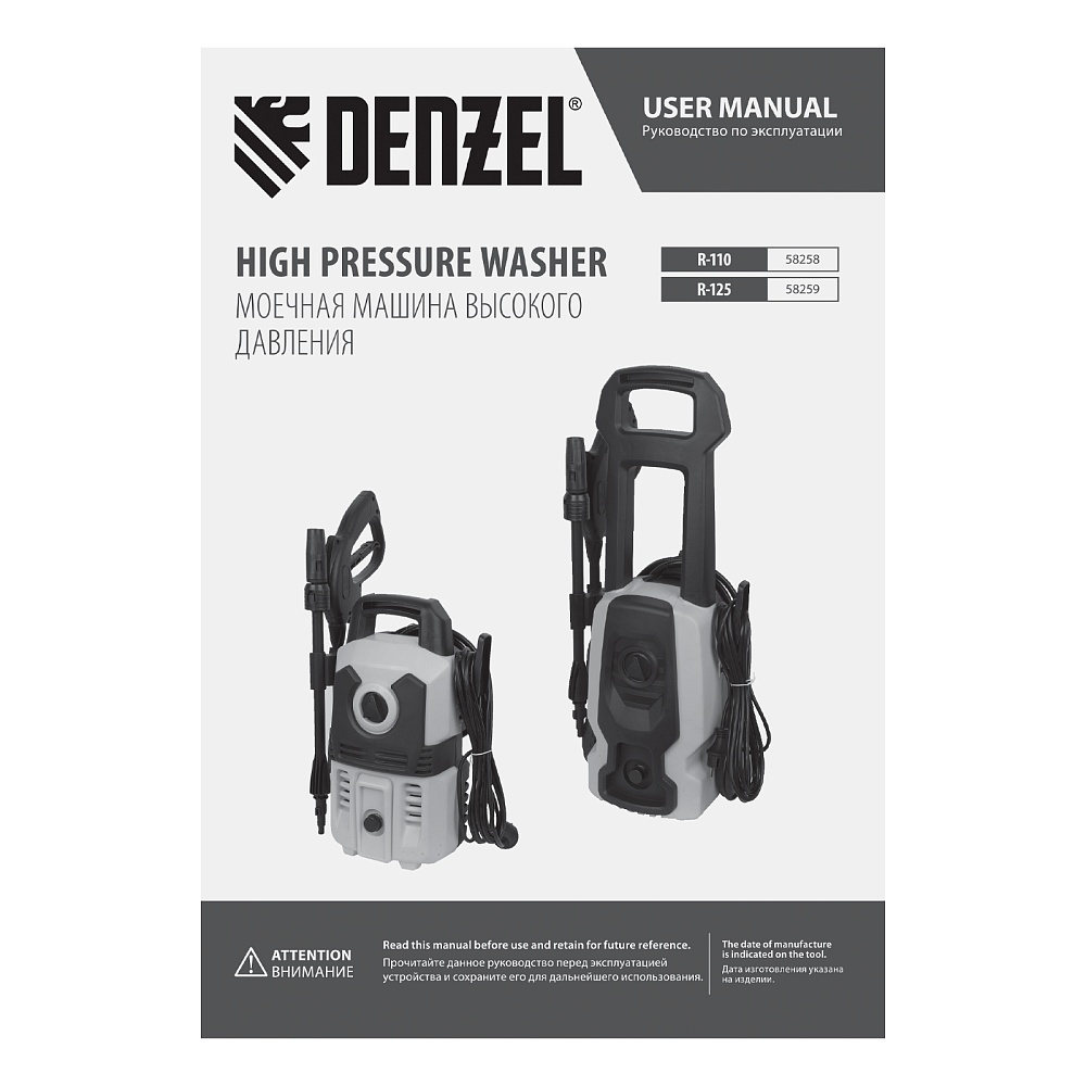 <p>Моечная машина высокого давления Denzel R-125 58259 мощностью 1500 Вт предназначена для мытья различных поверхностей при помощи водяной струи под давлением. Максимальное давление составляет 125 бар, производительность — 350 л/ч. С помощью мойки можно быстро и эффективно очистить фасад дома, дорожки на дачном участке, кузов автомобиля, садовую мебель и инвентарь. Машина подключается к водопроводной сети, а в случае ее отсутствия может забирать воду из любого открытого резервуара, работая в режиме самовсасывания. Рекомендована для использования в быту.</p><h2>Преимущества</h2><ul><li>Надежность — помпа с металлическими плунжерами выдерживает высокие нагрузки и обеспечивает стабильную работу в течение длительного времени.</li><li>Удаление въевшихся загрязнений — при необходимости можно использовать моющие средства, для этого предусмотрен внешний бачок с насадкой пеногенератора.</li><li>Эффективность — регулируемая насадка-сопло позволяет настраивать тип и интенсивность распыления в соответствии с поставленной задачей.</li><li>Простая подготовка к работе — благодаря быстросъемному адаптеру подключение входного шланга не занимает много времени.</li><li>Защита от засорения — фильтр входного штуцера задерживает посторонние частицы.</li><li>Безопасность — токопроводящие элементы надежно изолированы, внутренние части машины защищены от попадания воды по стандарту IPX5.</li><li>Защита от случайного пуска — перед началом работы необходимо разблокировать рычаг моечного пистолета.</li><li>Защита от превышения допустимого давления — манометрический выключатель останавливает насос при отпущенном рычаге пистолета.</li><li>Термозащита — производитель предусмотрел датчик температуры, электродвигатель автоматически отключается при перегреве.</li><li>Комфортное передвижение — длина кабеля и шланга высокого давления составляет 5 м.</li><li>Мобильность — благодаря удлиненной рукоятке и колесам машина легко перемещается в нужное место.</li><li>Несложный уход — в комплект поставки входит игла для прочистки сопла.</li><li>Продуманная конструкция — кронштейны для шнура питания и шланга высокого давления, а также держатель для пистолета обеспечивают удобство хранения.</li><li>Гарантия 3 года — надежность мойки высокого давления подтверждена производителем.</li></ul>