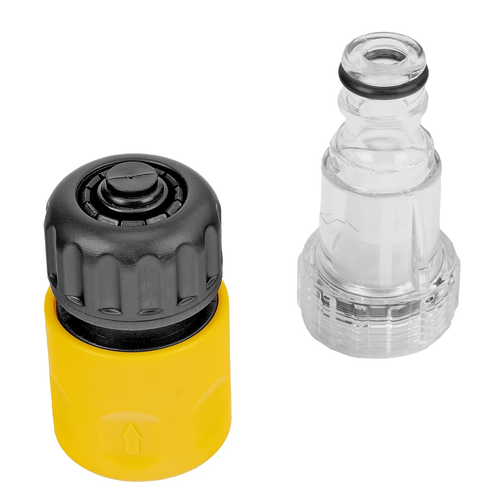 Мойка высокого давления, Шланг высокого давления, Пистолет моечный, Насадка-удлинитель пистолета, Регулируемая насадка-сопло, Пеногенератор с бачком для моющего средства, Входной штуцер с фильтром, Быстросъемный коннектор шланга, Игла для прочистки сопла, Кронштейн-держатель пистолета, Кронштейн для кабеля питания, Комплект крепежа, Инструкция по эксплуатации с гарантийным талоном