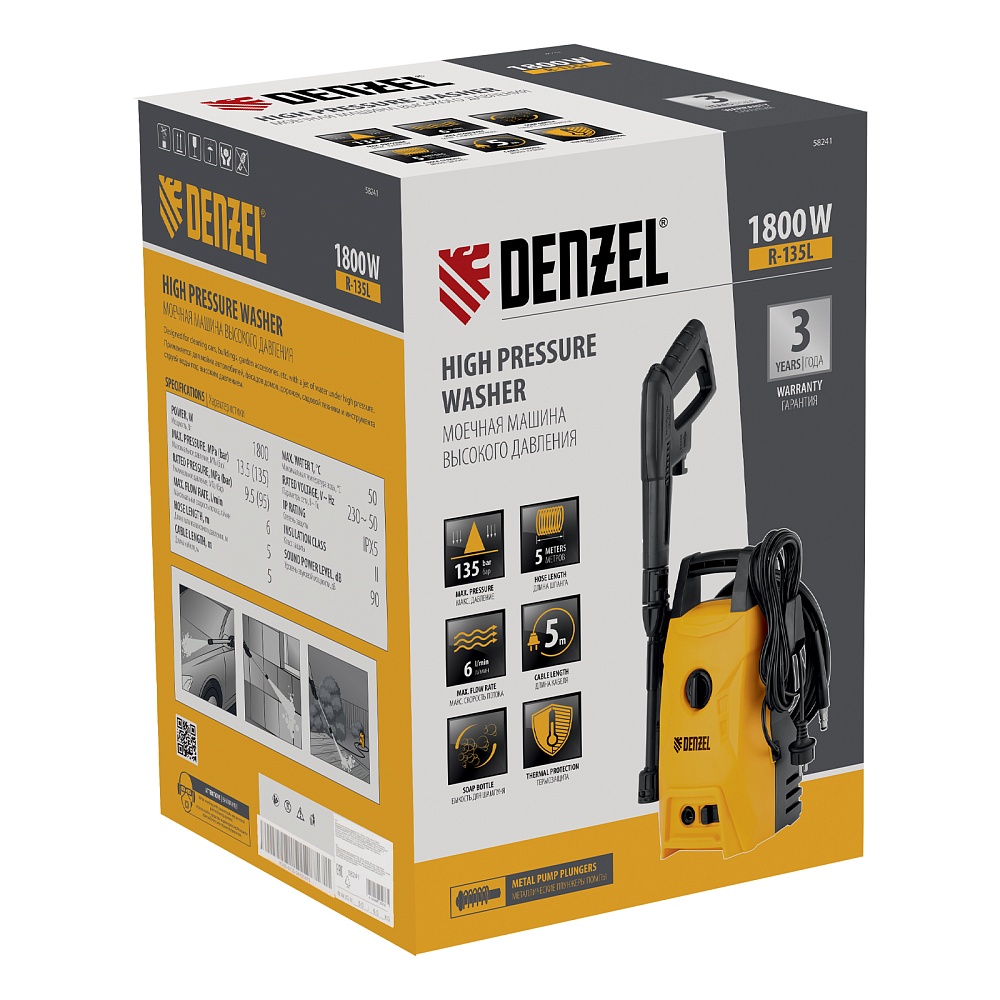 Моечная машина высокого давления R-135L, 1800 Вт, 135 бар, 360 л/ч Denzel купить в Красноярске цена ✅ - Все для СТО