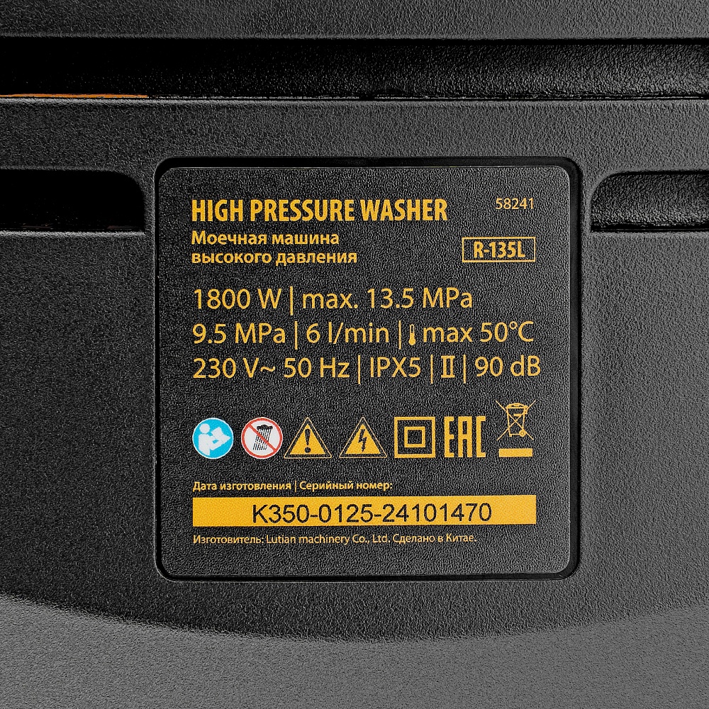 Моечная машина высокого давления R-135L, 1800 Вт, 135 бар, 360 л/ч Denzel