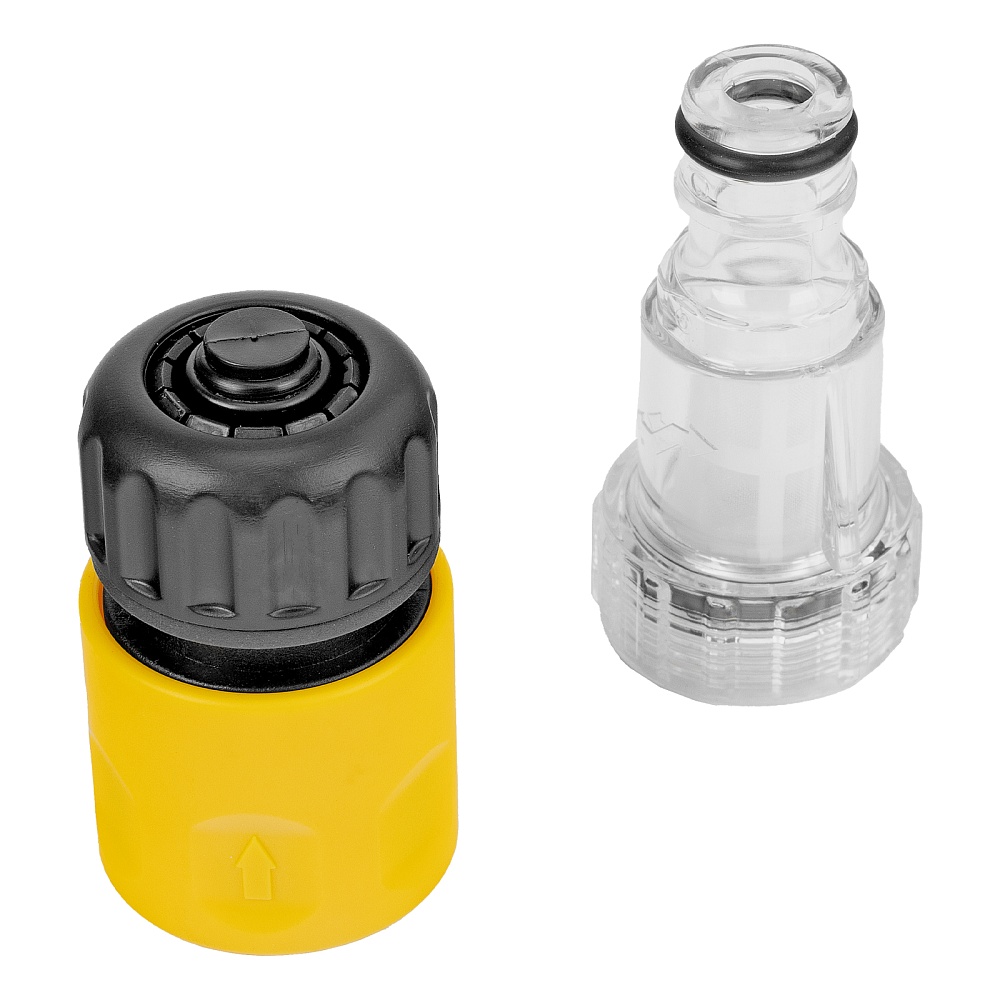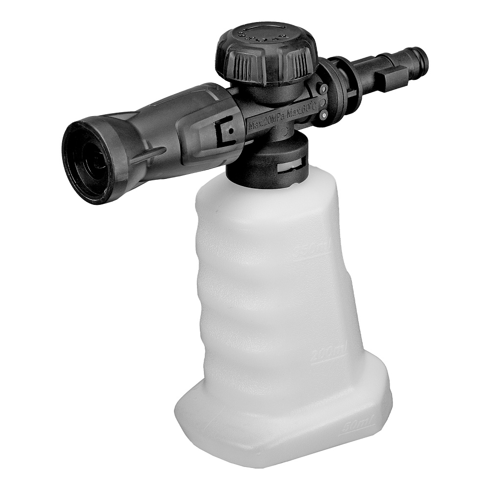 Мойка высокого давления, Кронштейн для шланга, Шланг высокого давления, Пистолет, Удлинитель пистолета с регулируемым соплом, Пеногенератор с бачком для моющего средства, Входной штуцер с фильтром, Быстросъемный коннектор шланга, кронштейн-держатель пистолета, Кронштей сетевого кабеля, Игла для прочистки сопла, Комплект крепежа, Инструкция с гарантийным талоном