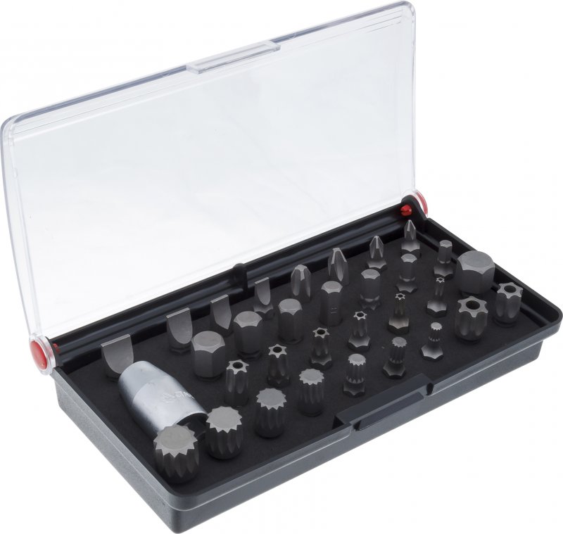 биты TORX с отверстием: Т20, Т25, Т30, Т40, Т45, Т50, Т55, Т60 биты Philips: 1, 2, 3, 4 биты шестигранные (Hex): 5, 6, 7, 8, 9, 10, 12, 14 биты шлицевые: 6.5, 8, 10, 12 биты двенадцатигранные (XZN): М5, М6, М8, М10, М12, М14, М16 держатель для бит (битхолдер) 1/2"