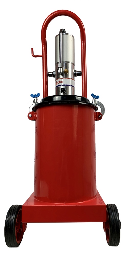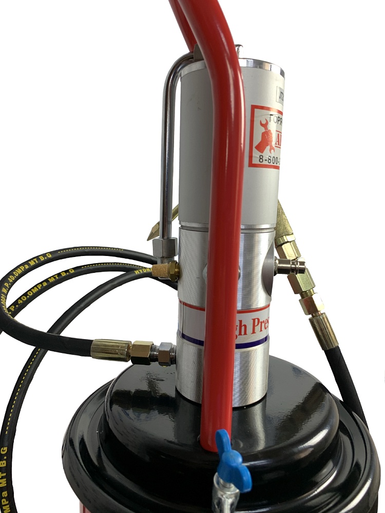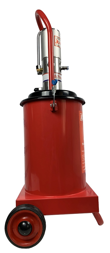 Нагнетатель густой смазки HG-77060 AE&T пневматический предназначен для подачи консистентной смазки (солидола) из стандартной бочки емкостью 50-60кг в смазываемые узлы под давлением до 300атм.