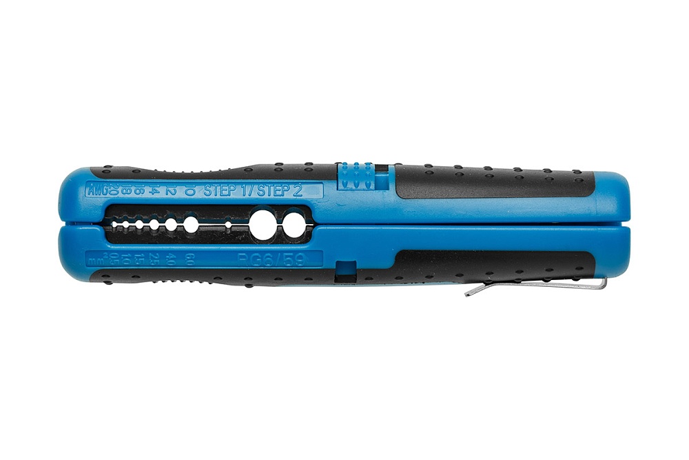 Удобный универсальный съемник изоляции для коаксиальных кабелей и круглых кабелей различного сечения.