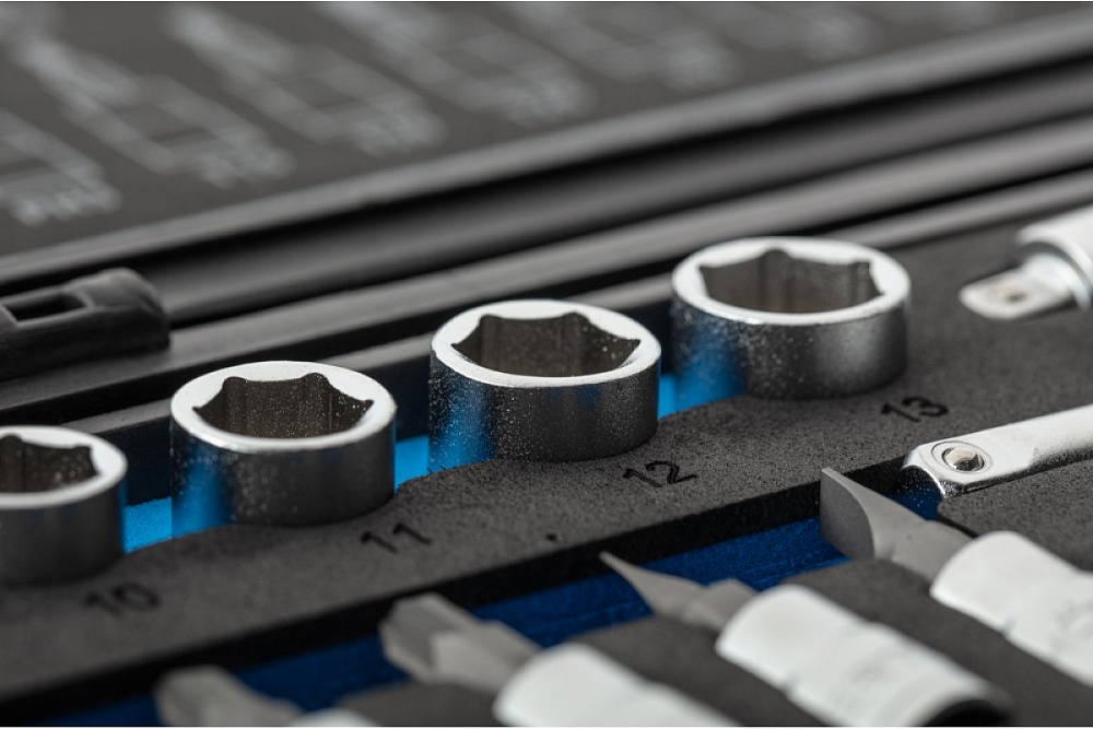 Набор торцевых головок, отверточных битов, аксессуаров 1/4”.