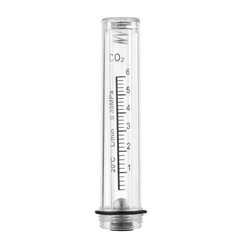 Колба выполнена из прозрачного пластика, по нижнему краю расположена резьба М22х1,5 для подсоединения к MIXER 2Р. Внутри наружной колбы, размещена малая пластиковая колба для шарика-поплавка. На ней нанесена шкала расхода углекислоты, которая показывает расход газа. Диапазон измерений от 0 до 6.