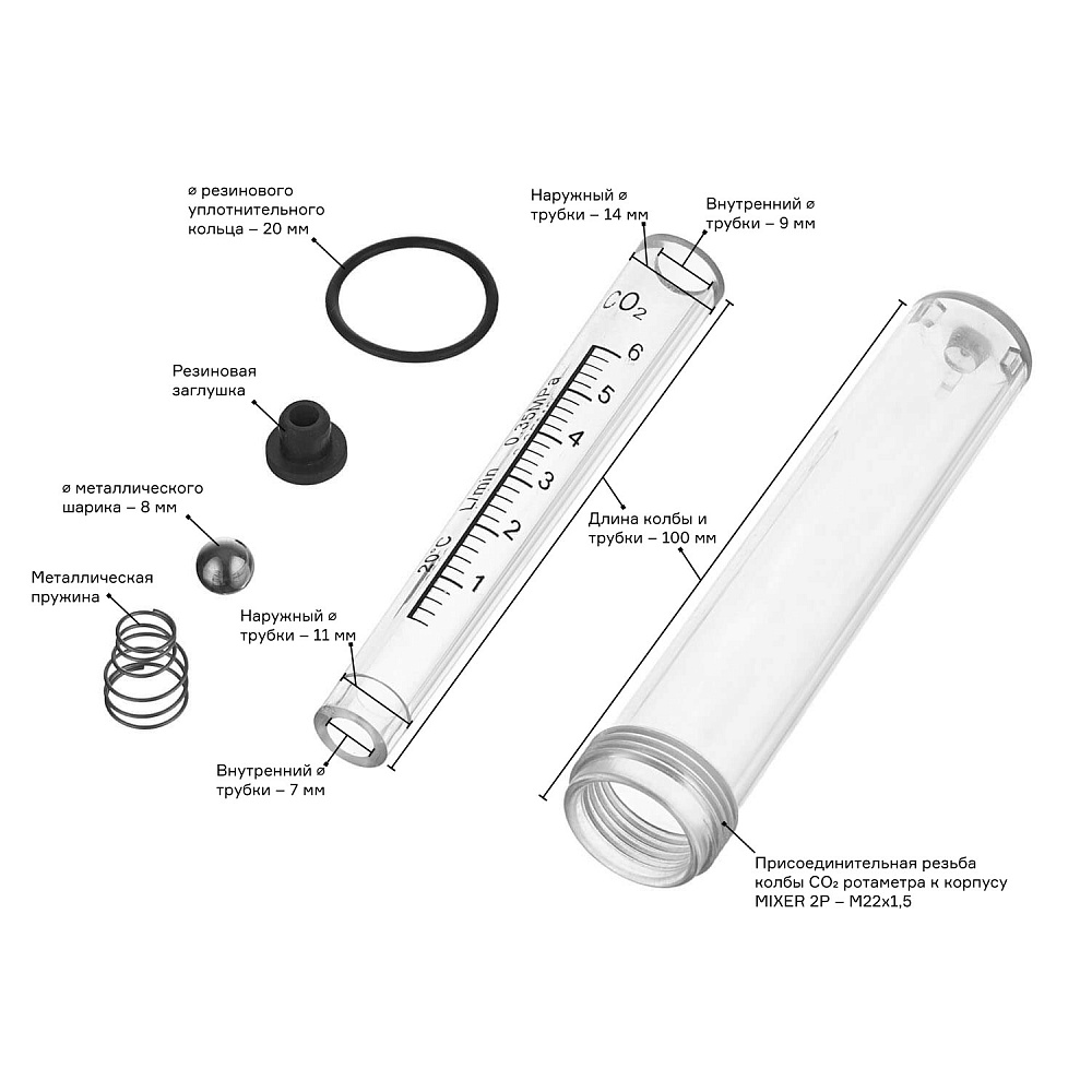 Комплектация:- Колба к ротаметру MIXER 2Р CO₂ в сборе – 1 шт.