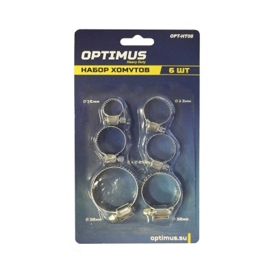 OPT-HT08 Хомуты червячные набор 6шт. 10-38 OPTIMUS купить в Красноярске цена ✅ - Все для СТО